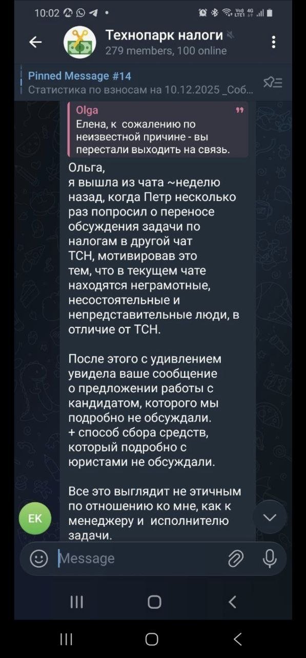 - История с исключением из реестра 700-ПП показательна. Процесс начала независимый собственник, организовала осмотр, пригласила инспекторов, сделала реальную работу. После этого активисты отстранили её от обсуждения и открыли сборы на юриста. Как именно это происходило видно на скриншоте. Комментарии излишни.