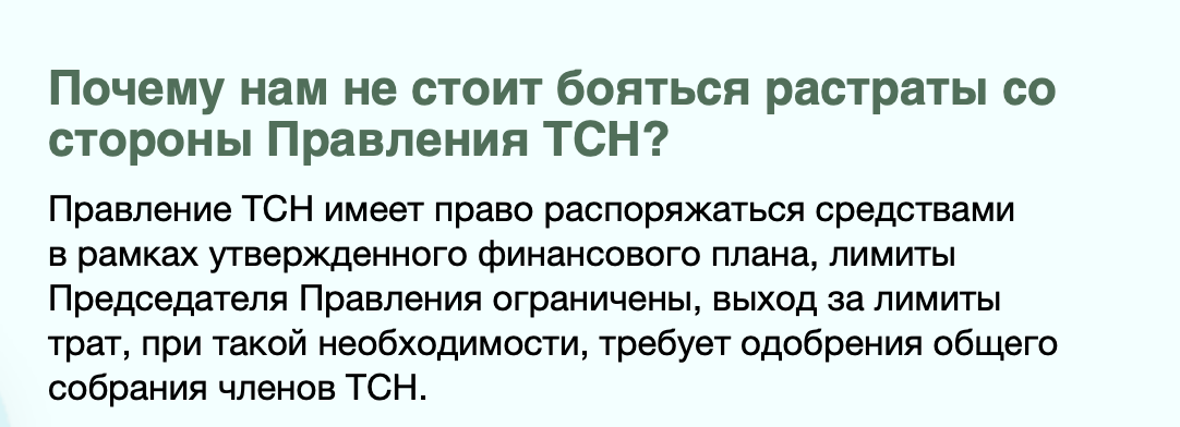 Инициаторы ТСН ничего кроме громких слов и калькулятора тарифа не предоставили, но требуют отдать в их руки управление жилищным комплексом.